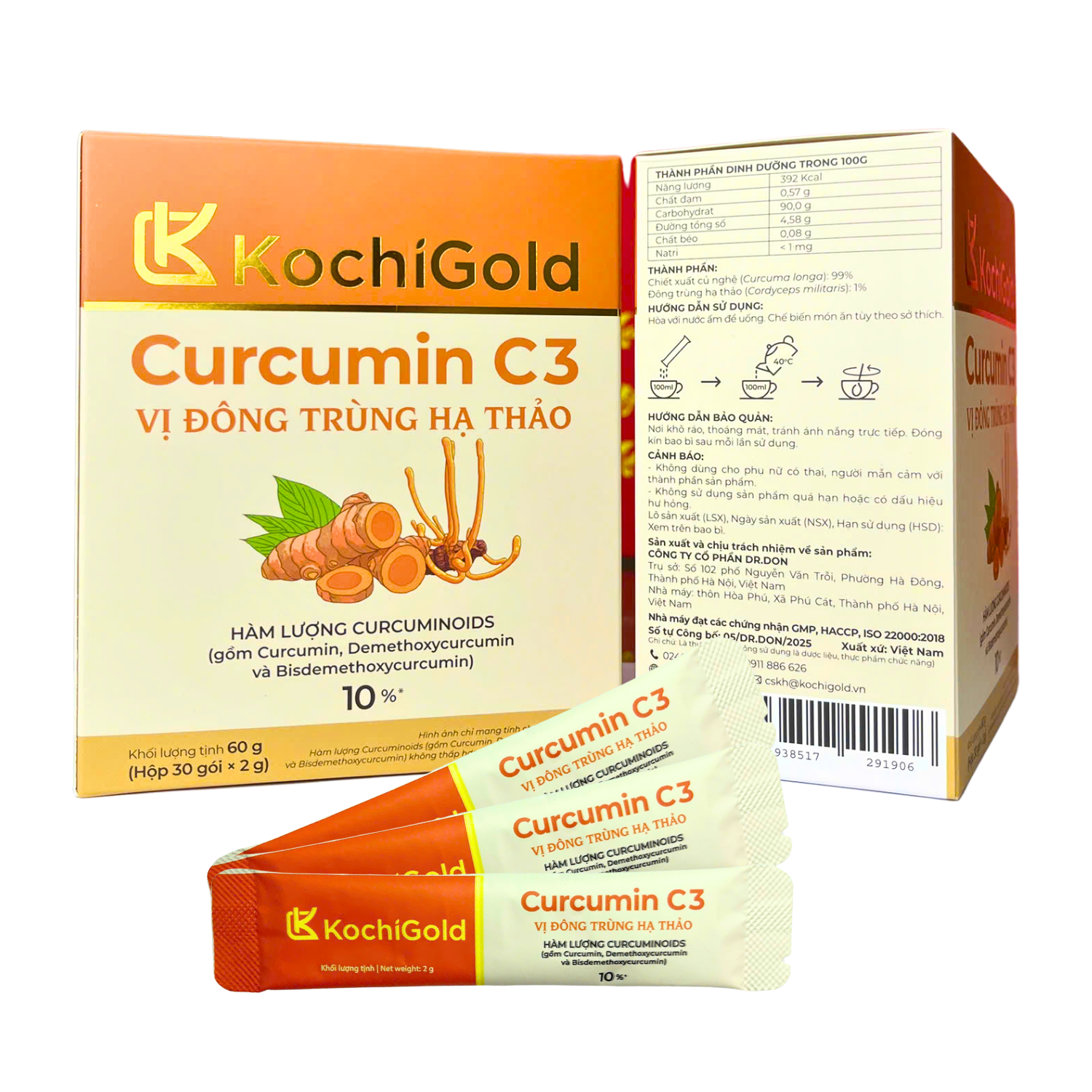 - Chiết xuất củ nghệ (Curcuma longa): 99%