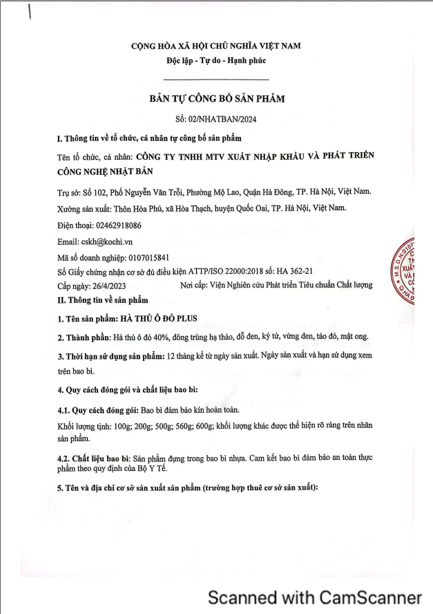 ⏩THÀNH PHẦN: Hà thủ ô đỏ 40%, đông trùng hạ thảo, đỗ đen, kỷ tử, vừng đen, táo đỏ, mật ong