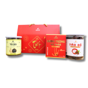 • HỘP QUÀ TẶNG ĐÔNG TRÙNG CAO CẤP + TÁO ĐỎ + TỎI ĐEN CAO CẤP