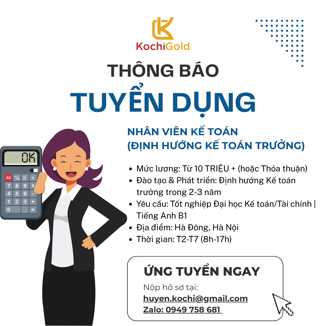 Bạn có phải là người đang tìm kiếm một cơ hội phát triển đột phá trong lĩnh vực kế toán, với khát vọng vươn tới vị trí Kế toán trưởng trong tương lai? KochIGold chào đón bạn gia nhập đội ngũ năng động và chuyên nghiệp của chúng tôi!